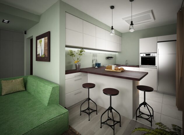 - ściany w kuchni Aura® Bath & Spa Matte Finish 532 firmy Beniamin Moore– kolor NCS S 1005 G
